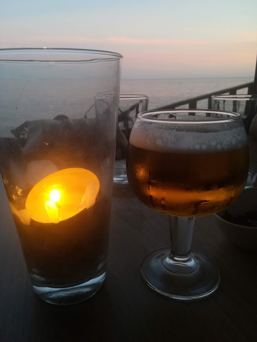 A bar with beautiful scenery, perfect for enjoying a beer. The service is friendly and fast